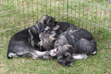 Suzi with a hug for Mr Purple. One more cuddle nap for the pups after some play fun.
