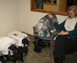 Phantom came along to get a health certificate, but the pups tried to take him