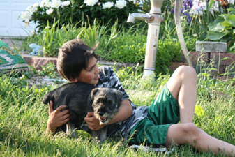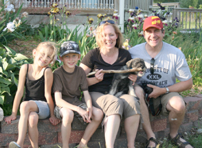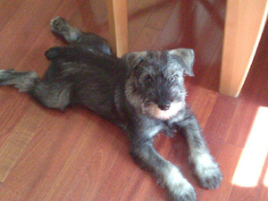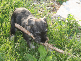 Franky making himself at home at his new home. Glad to see the 'frog dog' so happy!