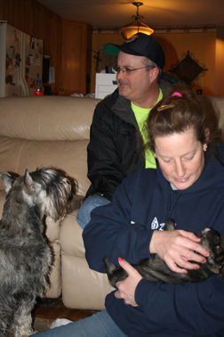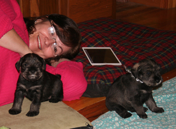 Phantom and I get puppy kisses from Mr Purple and Miss Silver.